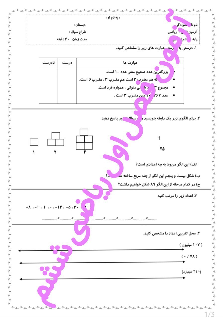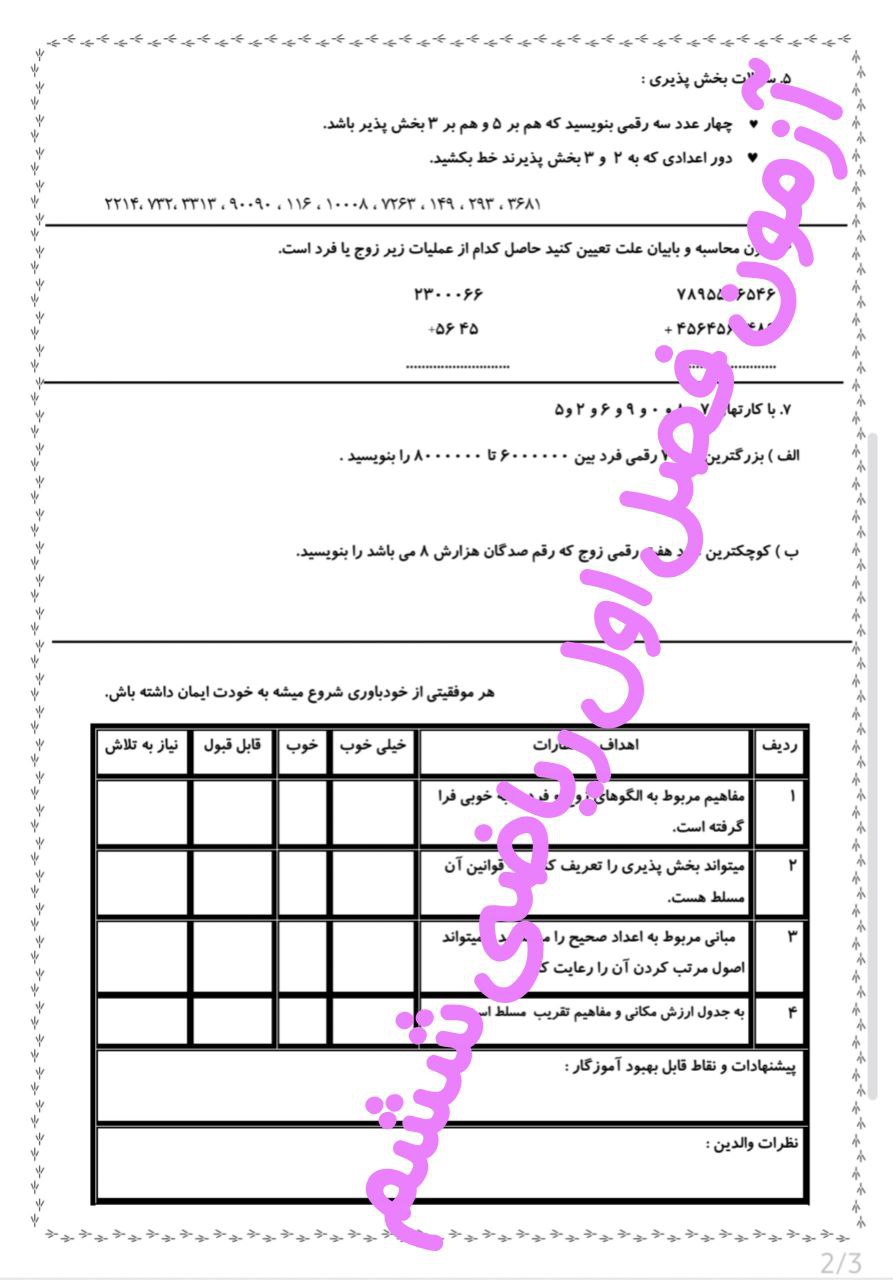 ازمون فصل 1 با 7 سوال به همراه با پاسخنامه و جدول ارزشیابی توصیفی قابل استفاده برای دانش آموزان جهت سنجش کلی از فصل و همکاران